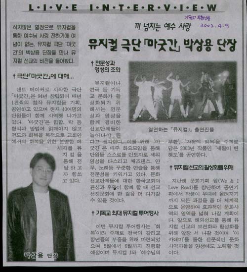 Á¦¸ñ [±âµ¶±³ºÎÈï½Å¹®] live interview ¹Ú»ó¿ë ´ÜÀå(2003³â)