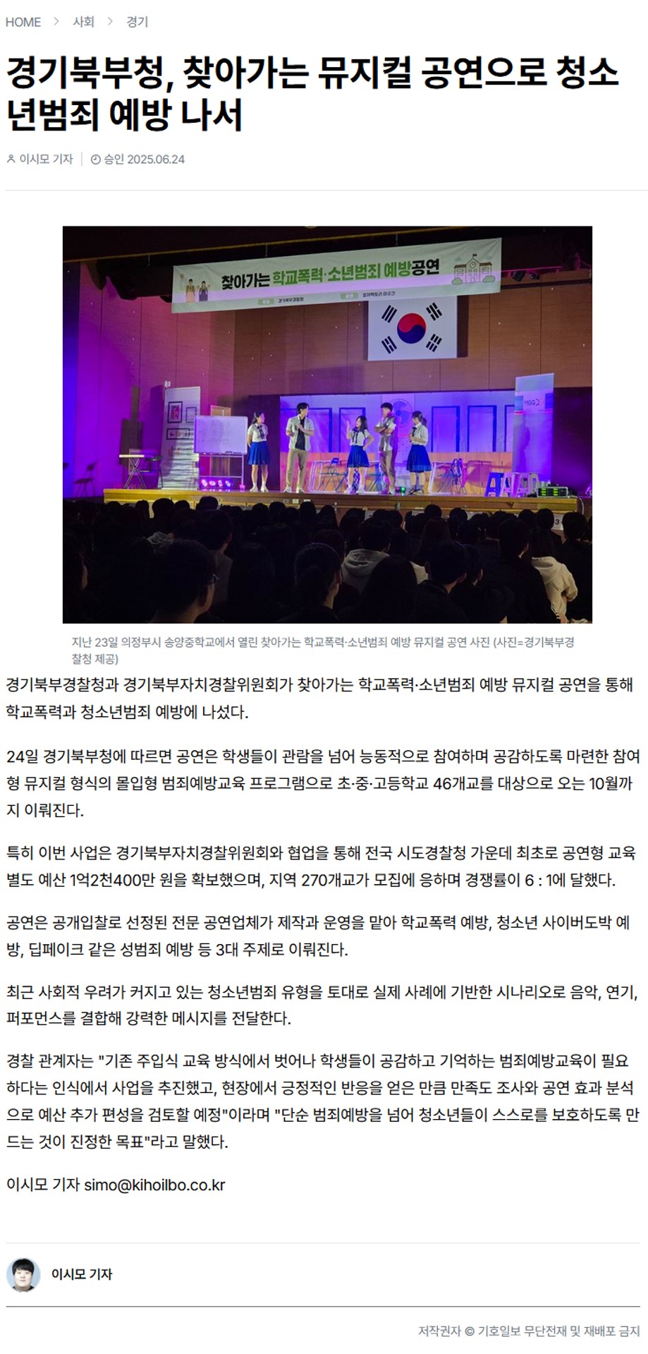 [±âÈ£ÀϺ¸] °æ±âºÏºÎû, ã¾Æ°¡´Â ¹ÂÁöÄà °ø¿¬À¸·Î û¼Ò³â¹üÁË ¿¹¹æ ³ª¼­
